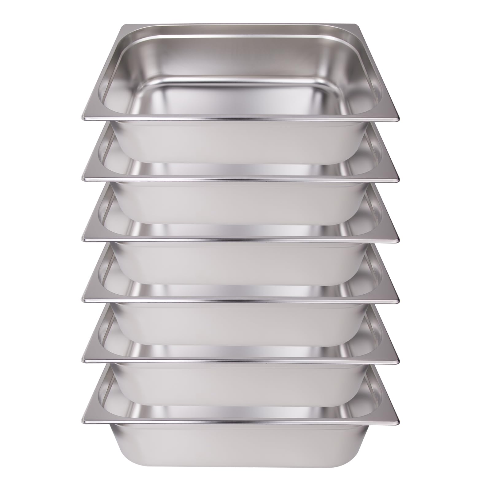 Clivia 1/1 Size Stainless Steel Food Pans,6"Deep Food Containers- Pack of 6