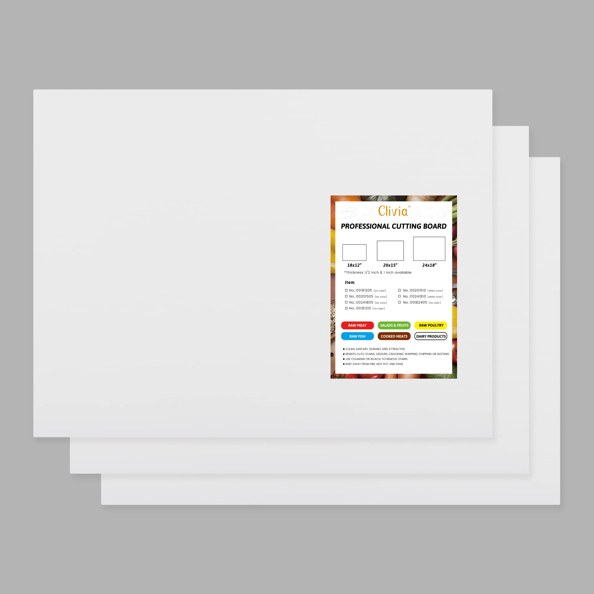 Clivia White Plastic Cutting Board Set of 3, 24 x 18 x 1 Inch Commercial Grade Chopping Board Large Cutting Boards for Kitchen - Dishwasher Safe, NSF Certified