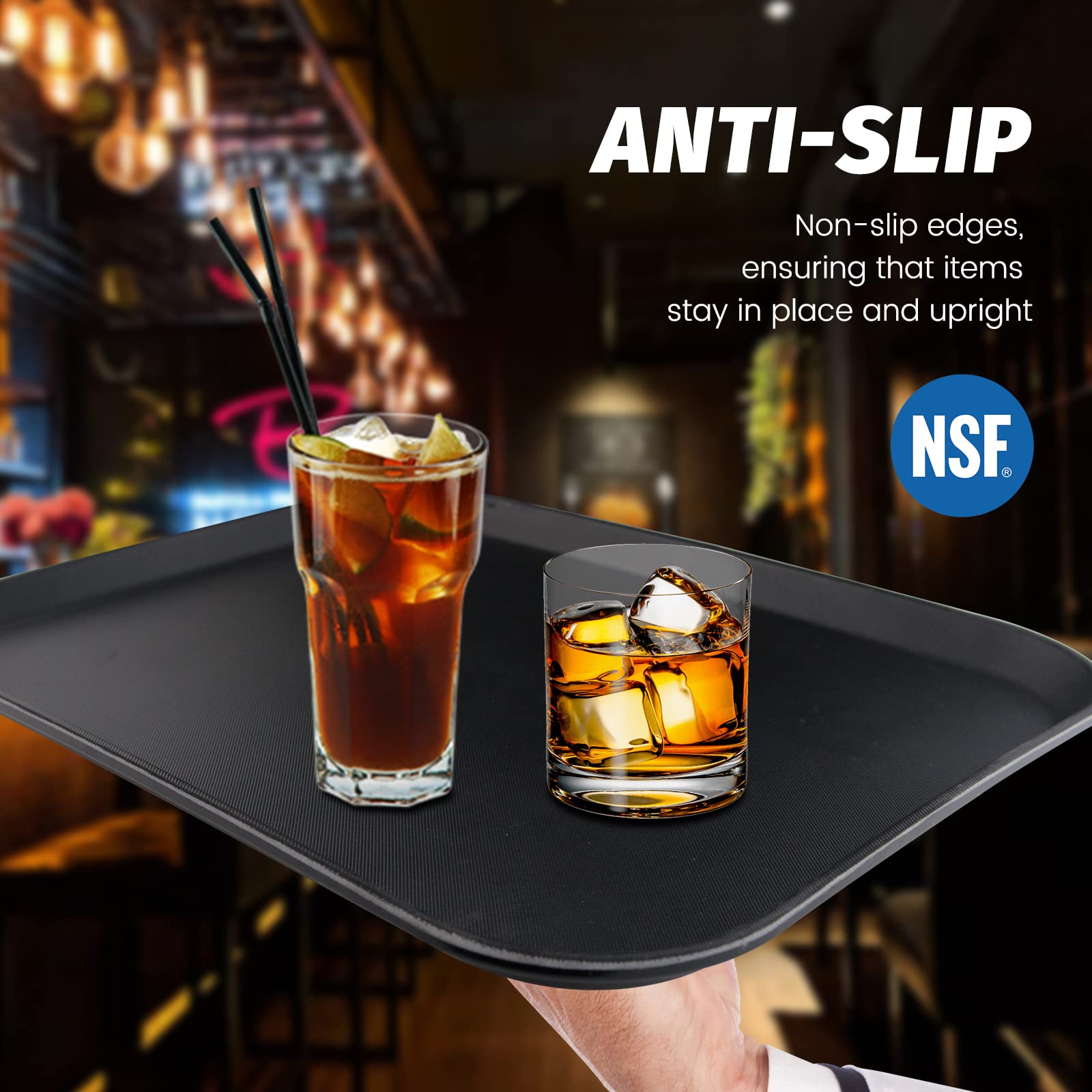 Clivia 6 Pack Restaurant Grade Non-Slip Tray, Fiberglass Serving Trays, Rectangular,13.9X 10Inch, Plastic, Black